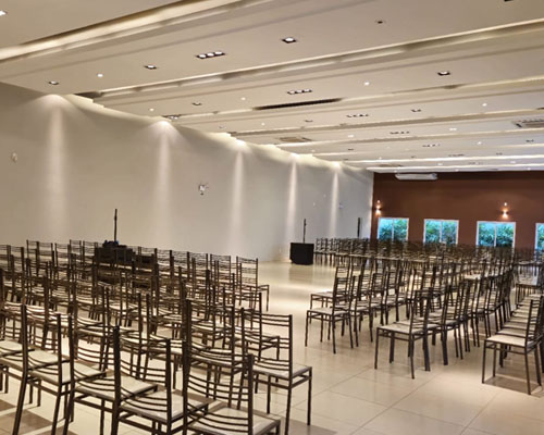 Locação Salão de Festas Locação Salão de Festas Climatizado, com cozinha industrial, ar condicionado, mesa e cadeiras e banheiros adaptados. Espaço para aniversários, casamentos ou jantar para até 250 pessoas. Desconto especial para nossos associados. Quero Alugar